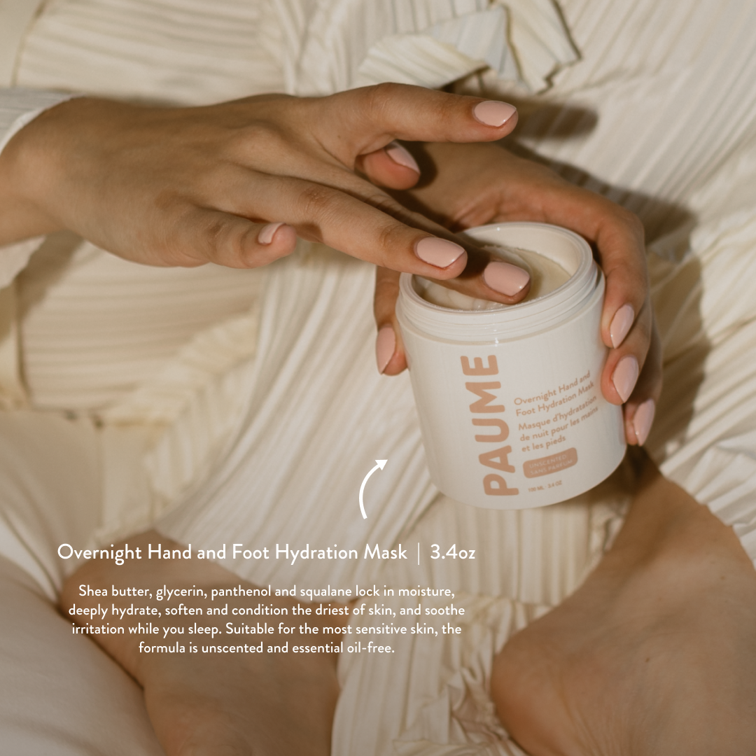 The Probiotic Hand Balm provides daily hydration and nourishment, while the All-in-One Cuticle & Nail Cream softens cuticles and strengthens nails. The Renewing Hand Serum visibly fades dark spots, reduces fine lines, and improves overall tone and texture. Finish with the Overnight Hand & Foot Hydration Mask to lock in moisture and deeply condition even the driest hands and heels. Pair with our Organic Cotton Overnight Gloves for optimal results.